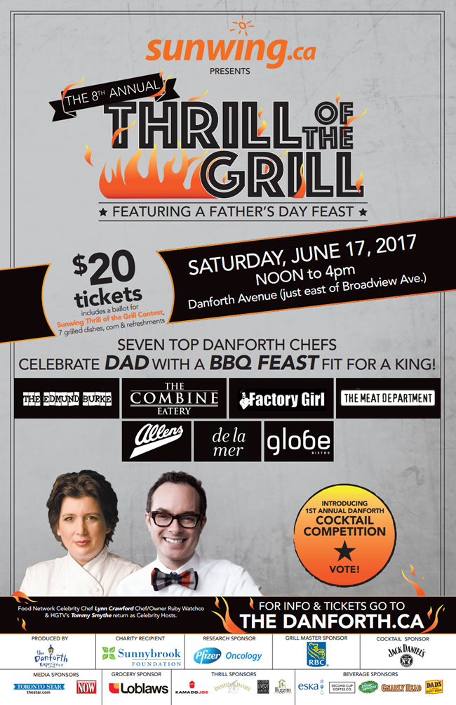 Our Danforth BIA signature event, Thrill of the Grill, is fast approaching. As you know, we've moved the event up in the calendar so that it takes place on Saturday, June 17th - Father's Day Weekend. Great BBQ, Great Fathers & Father figures & great shopping for Dad - a perfect combination.