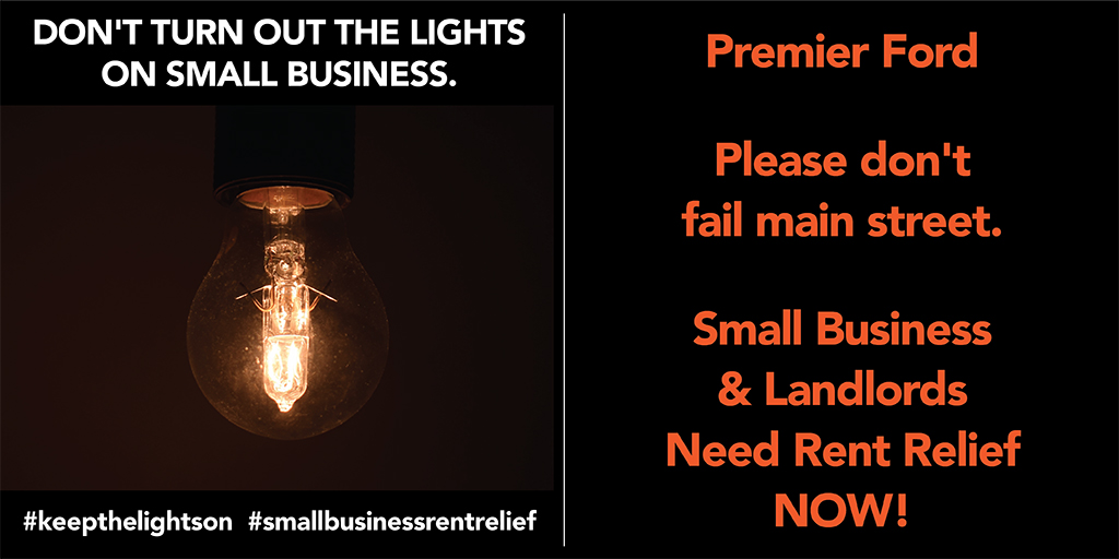 Based on conversations that Albert Stortchak (Board Chair) and I have had with our MP Julie Dabrusin and our MPP Peter Tabuns over the past few days, it was suggested that Round 2 should be specifically directed towards the Provincial Government - Premier Ford and Minister Prabmeet Singh Sarkaria (Minister of Small Business and Red Tape).  Also attached is the rent relief proposal created by the NDP this past weekend.  Peter shared it with us on Monday morning and said that they needed help getting it in front of the Government.  I've also attached the current information pertaining to small businesses that Premier Ford's Ontario government has issued as part of their Ontario Action Plan - it is woefully lacking in addressing the true need - rent relief for small businesses and their landlords.